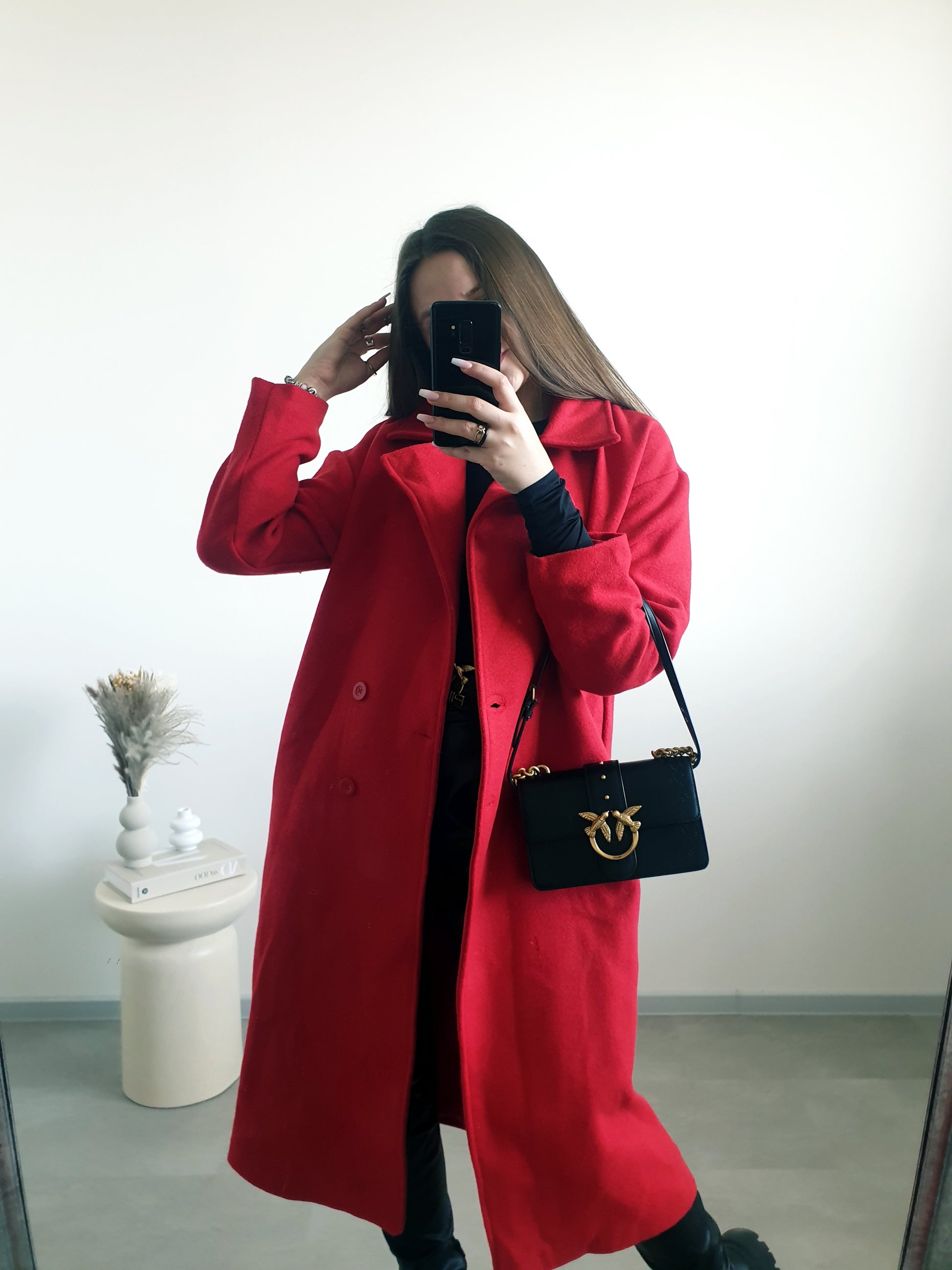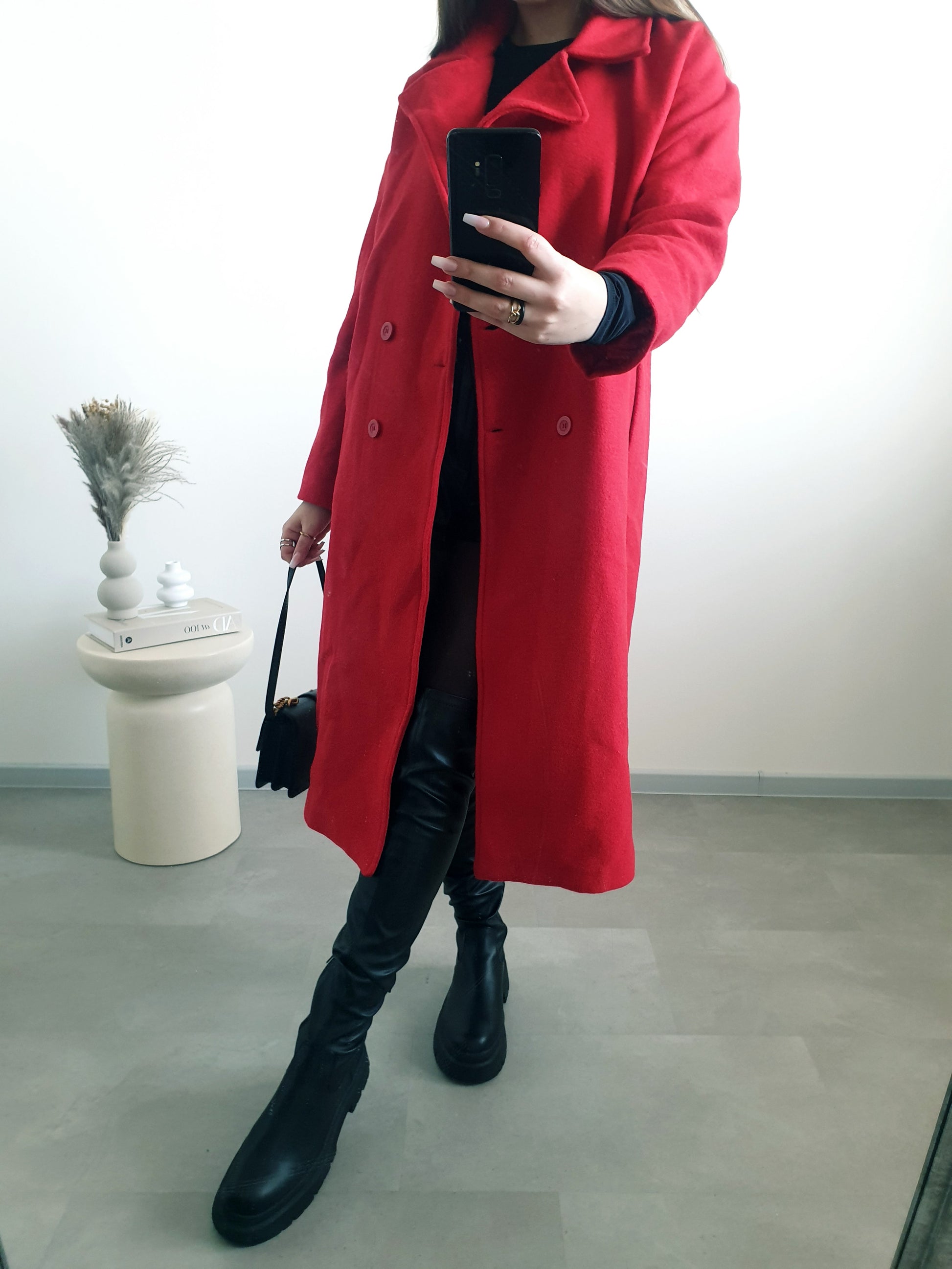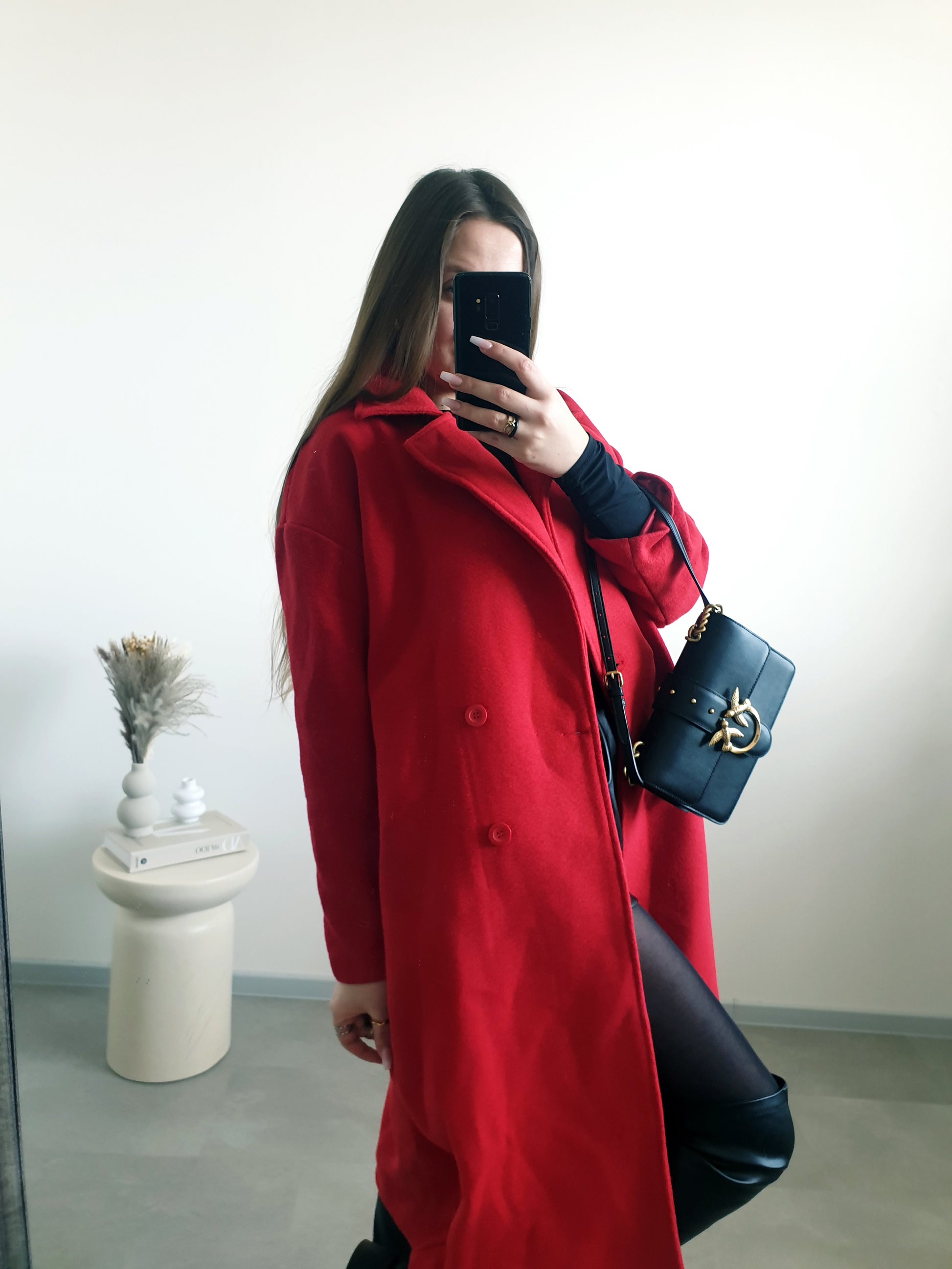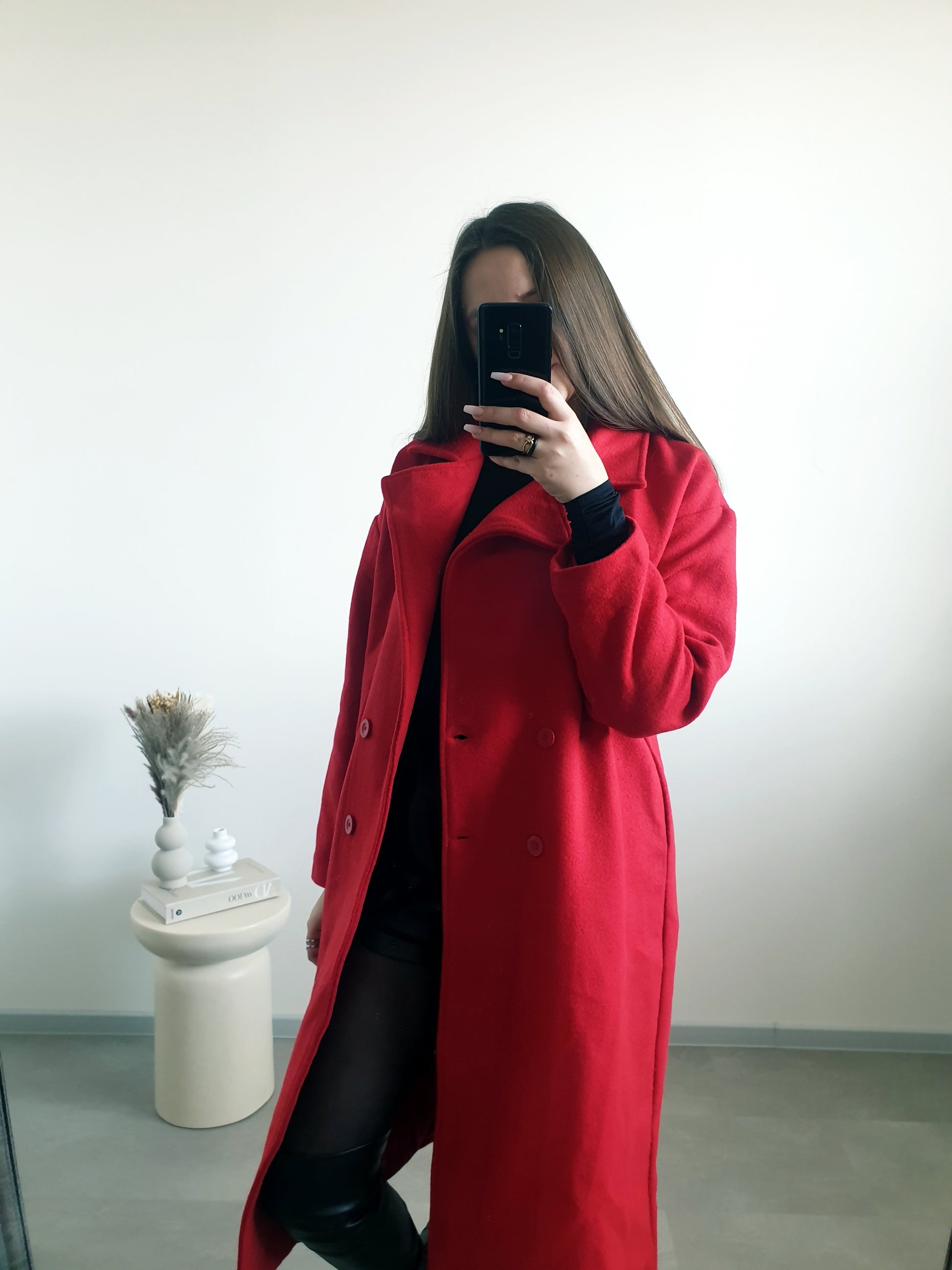 Červený maxi kabát 40