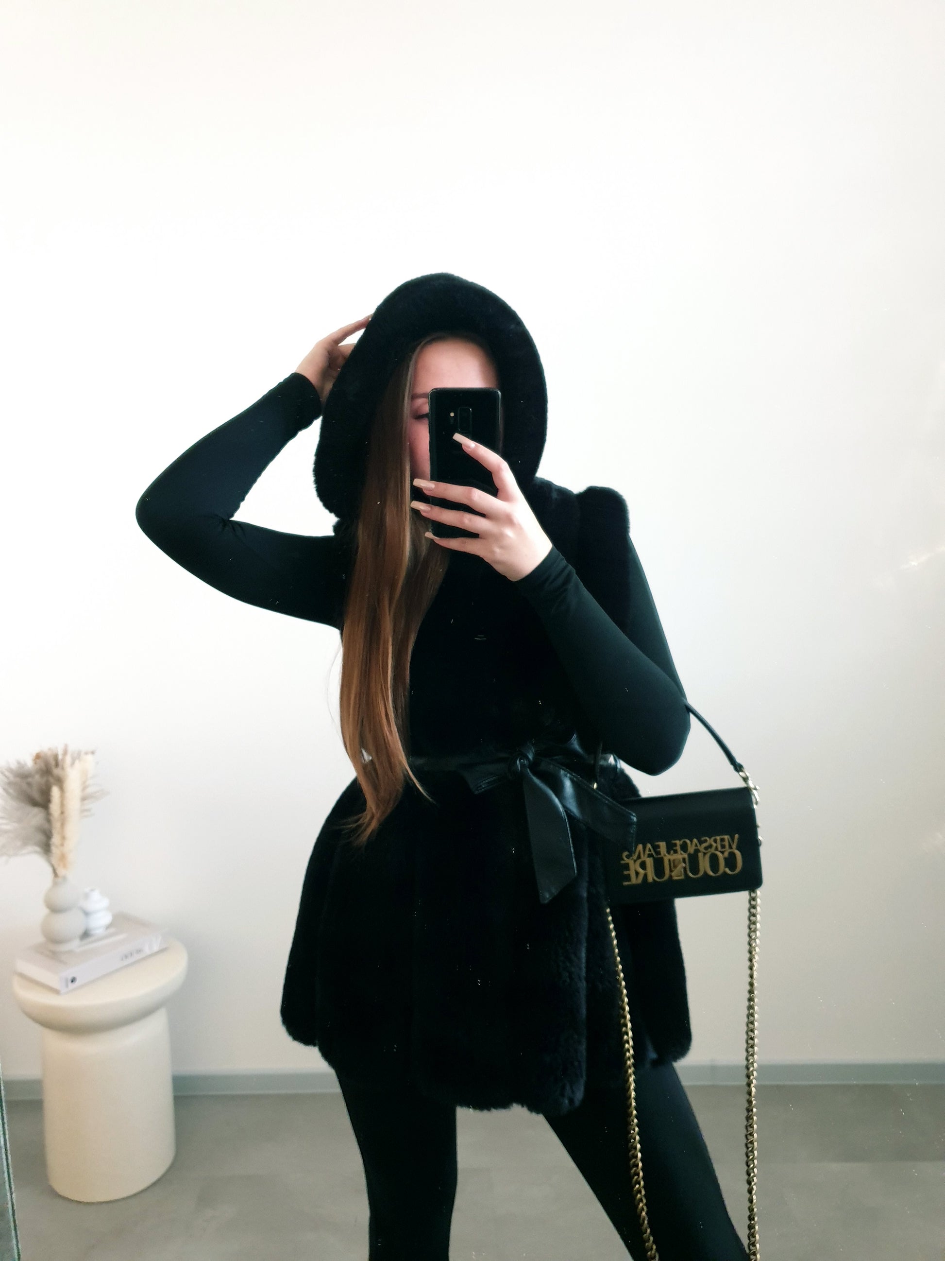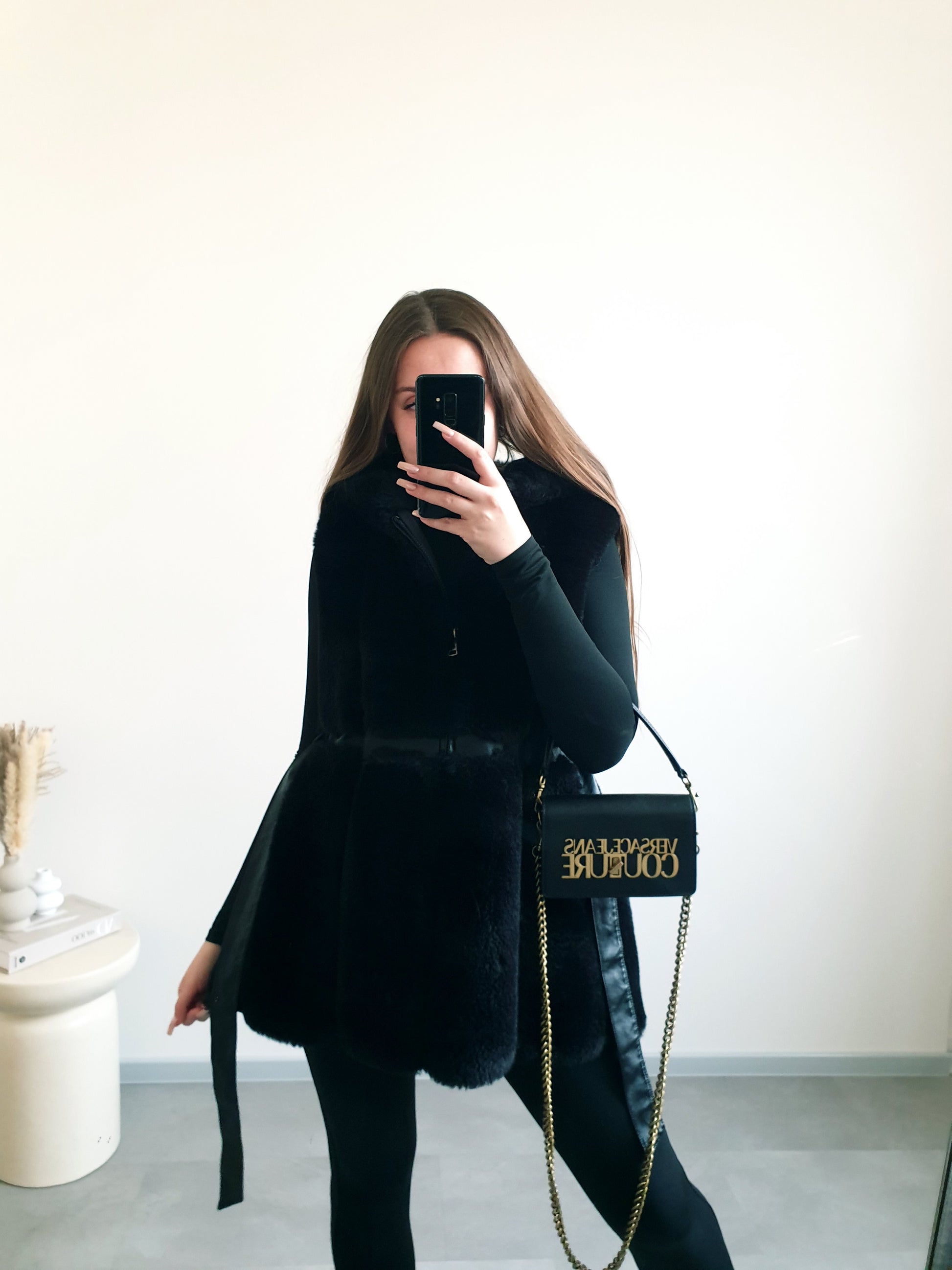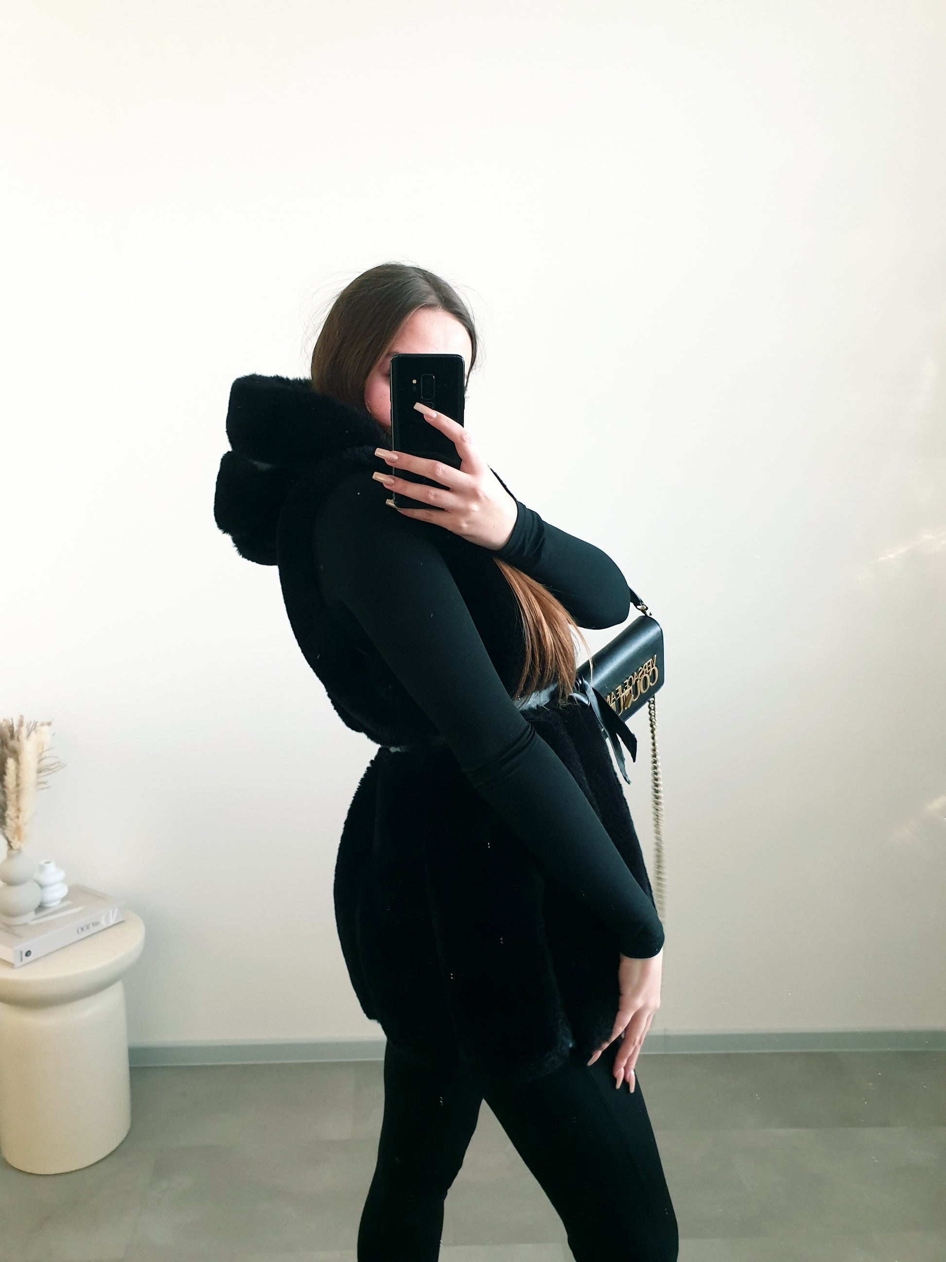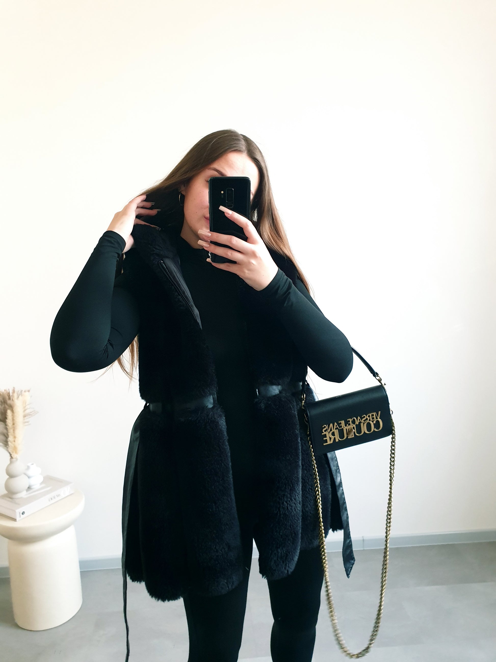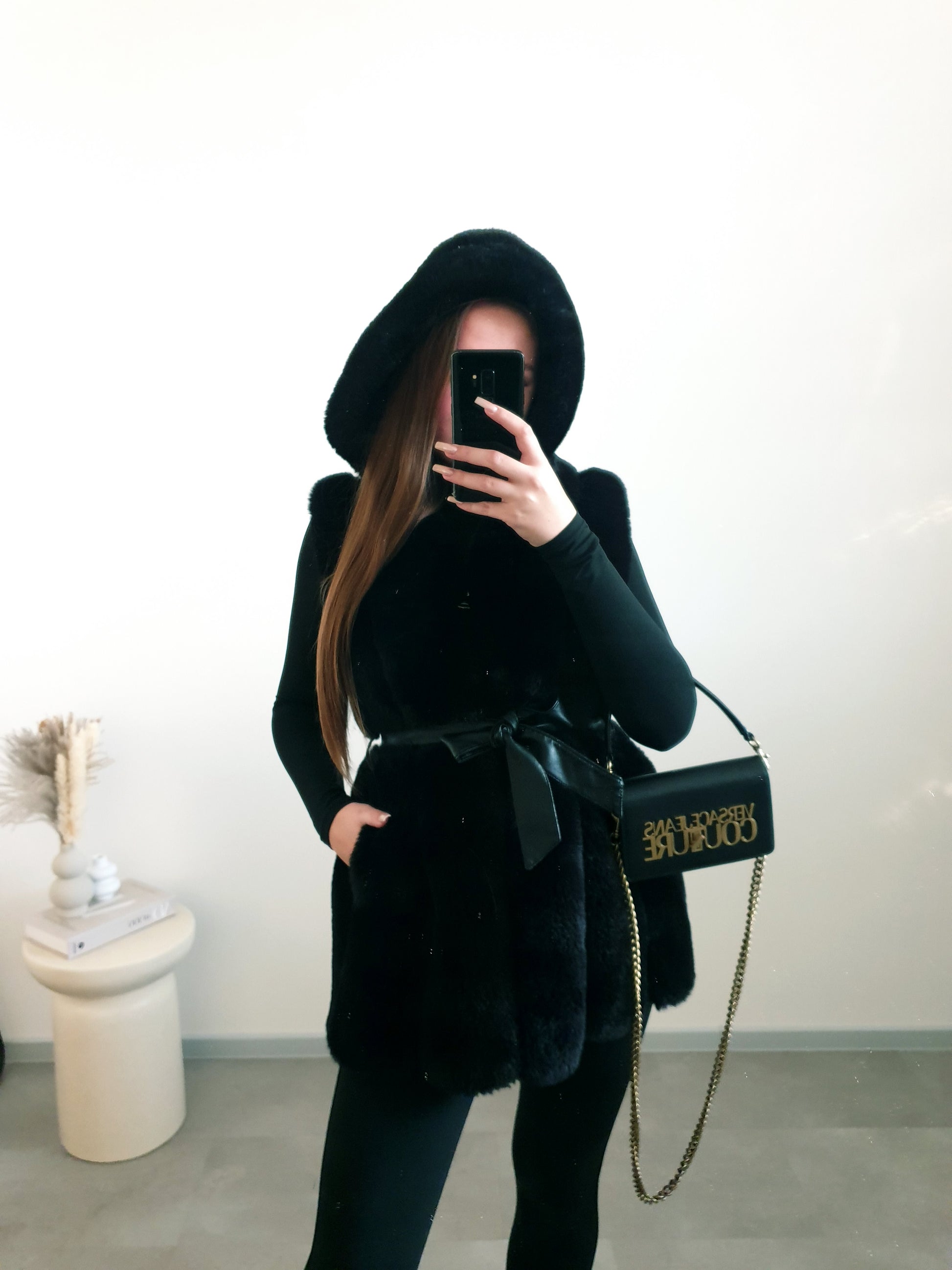 Čierna kožušinová vesta M