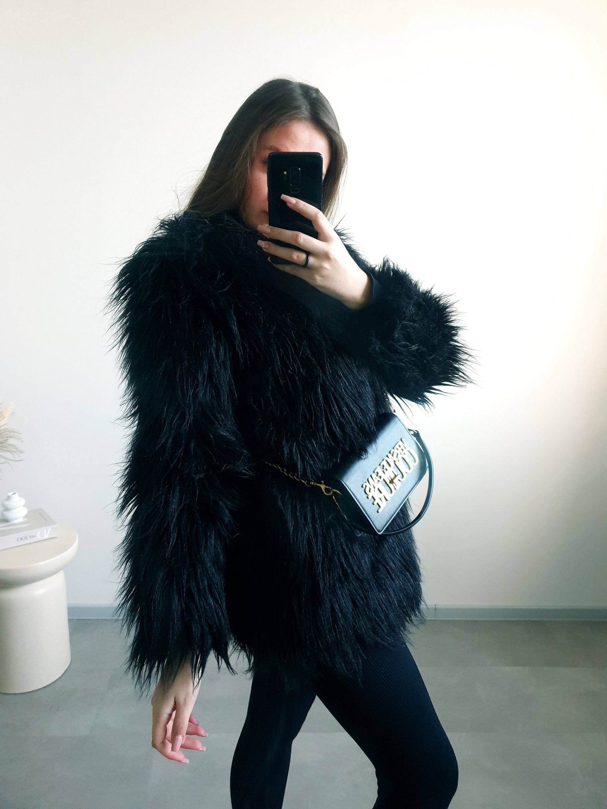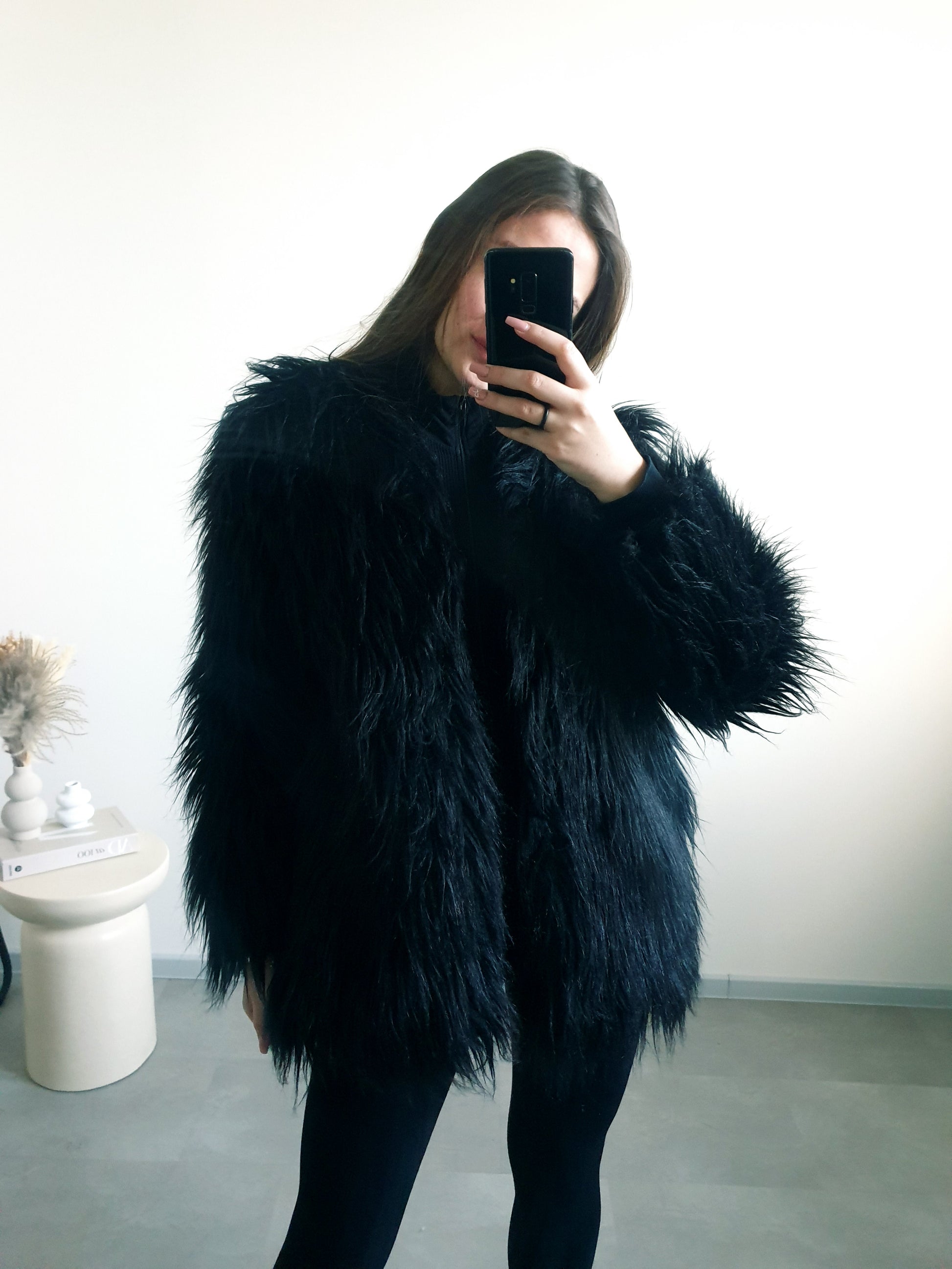 Čierny kožuch M