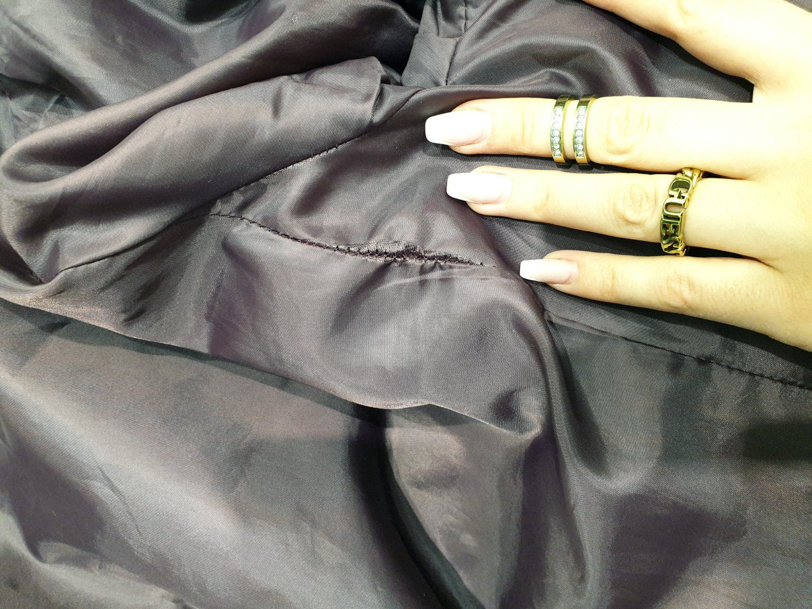 POŠKODENIE: na podšívke, pri nosení zanedbateľné