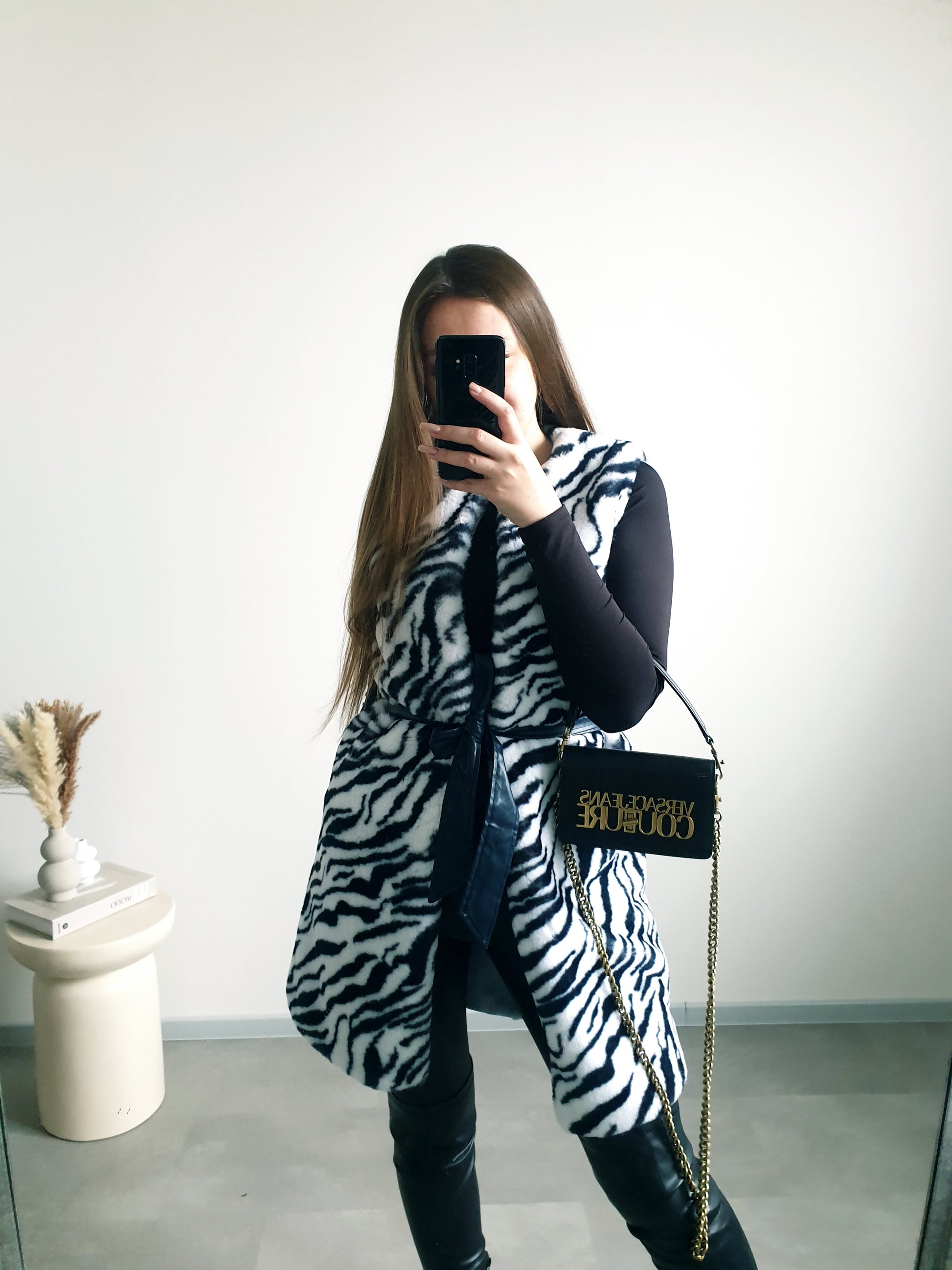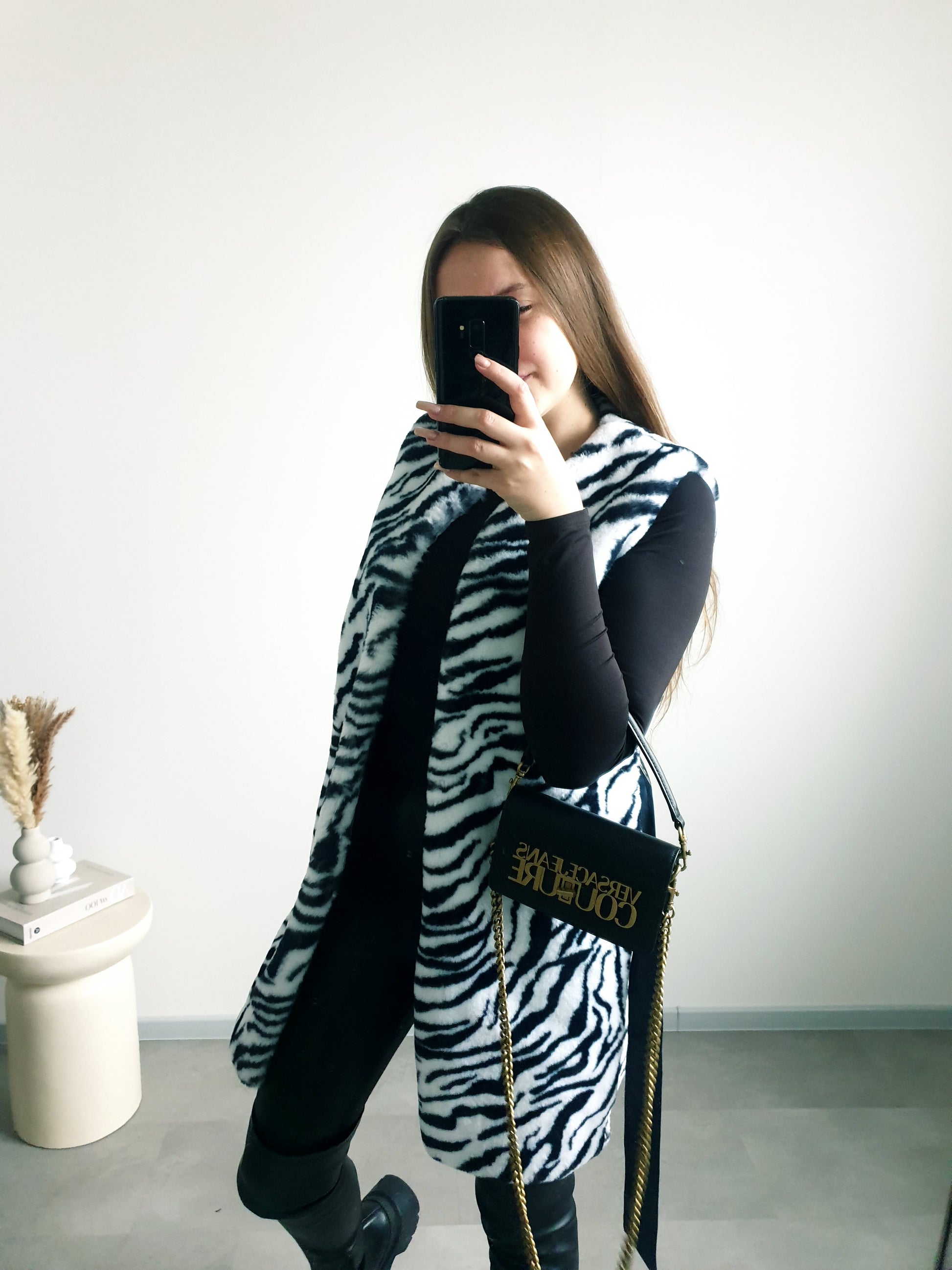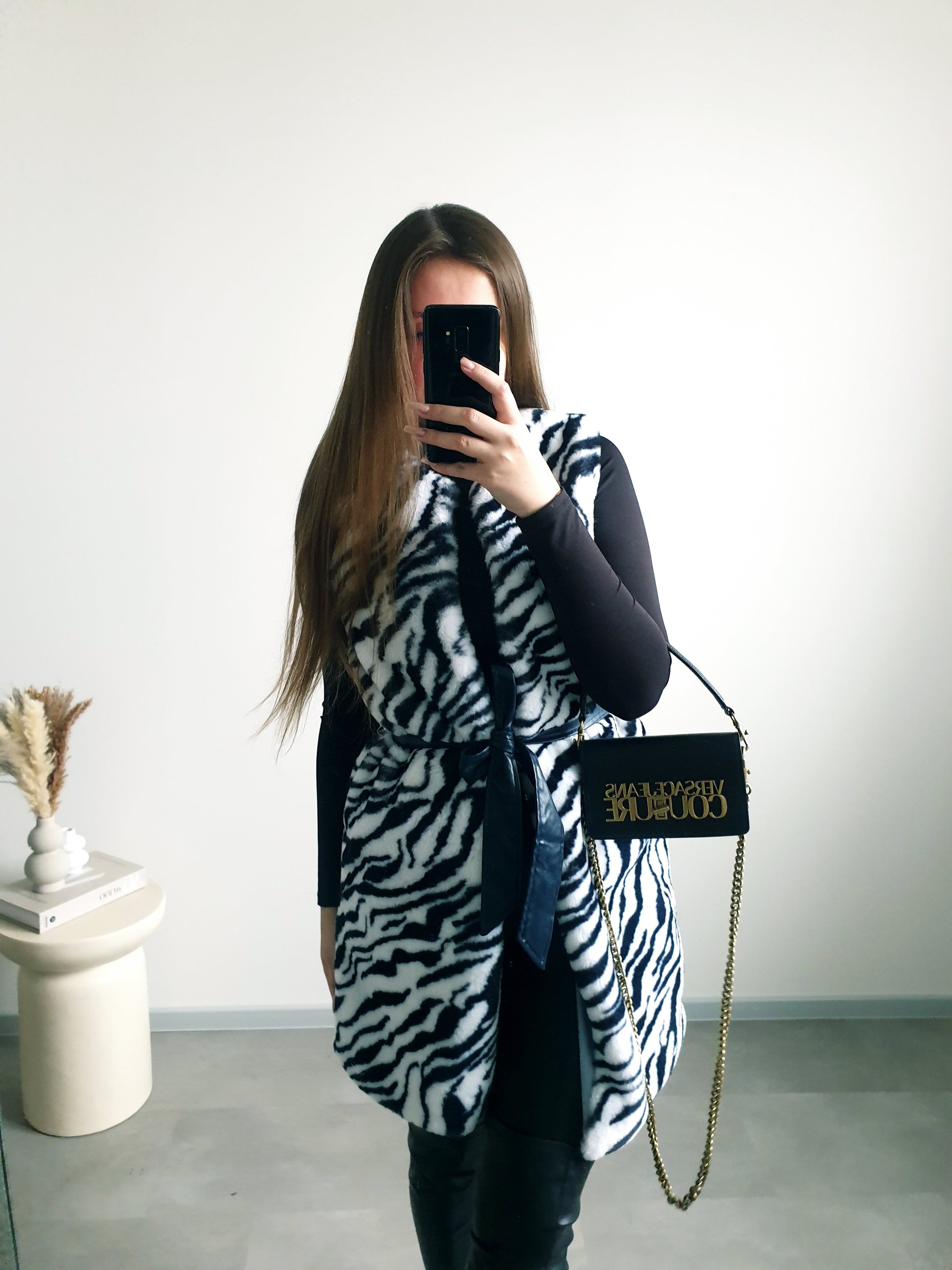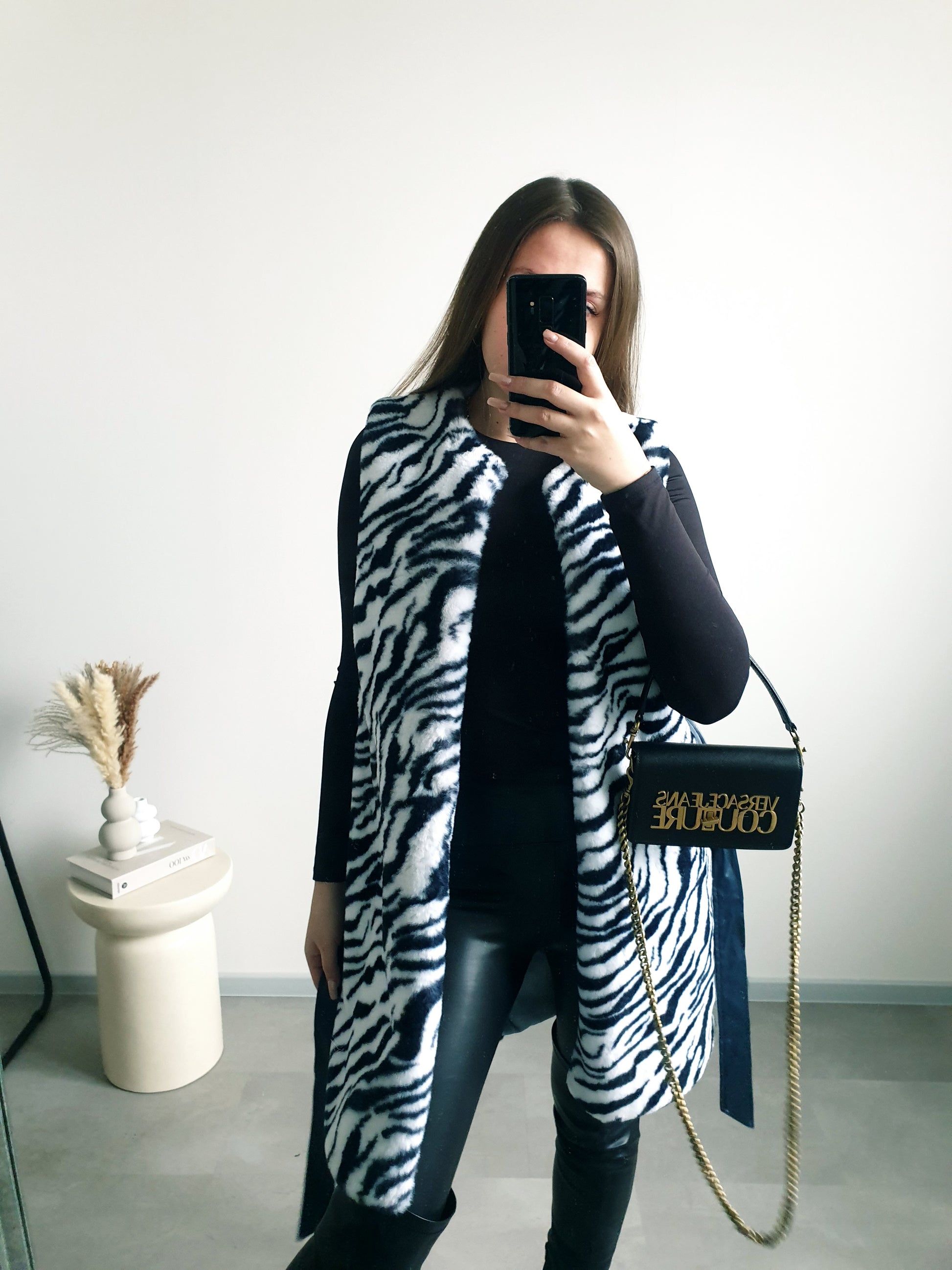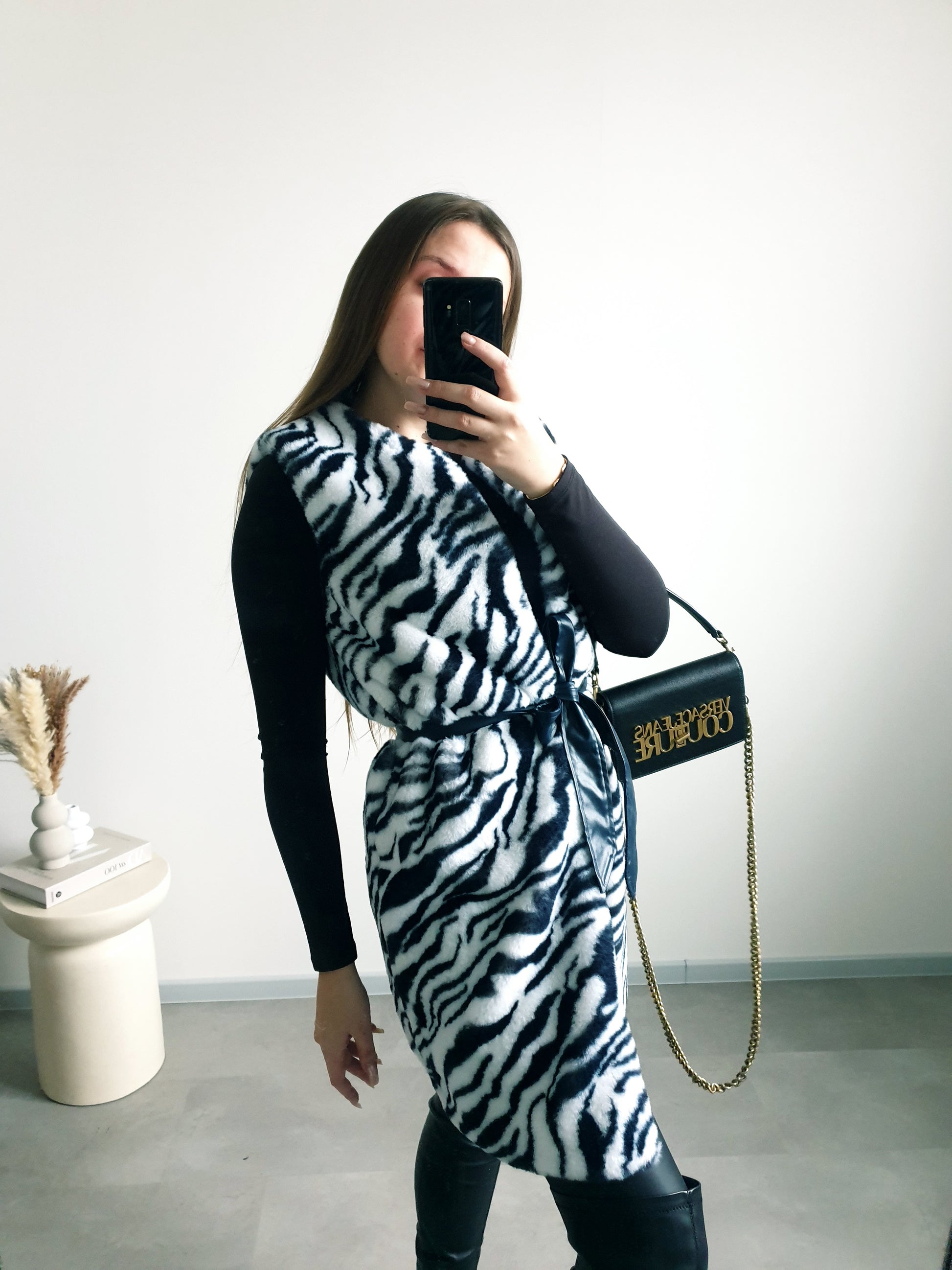 Zebrovaná kožušinová vesta S/M
